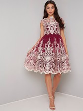 Abendkleid Midi Standesamt Bordeaux Spitze Tull Chi Chi London Gr 36 S Neu Ebay