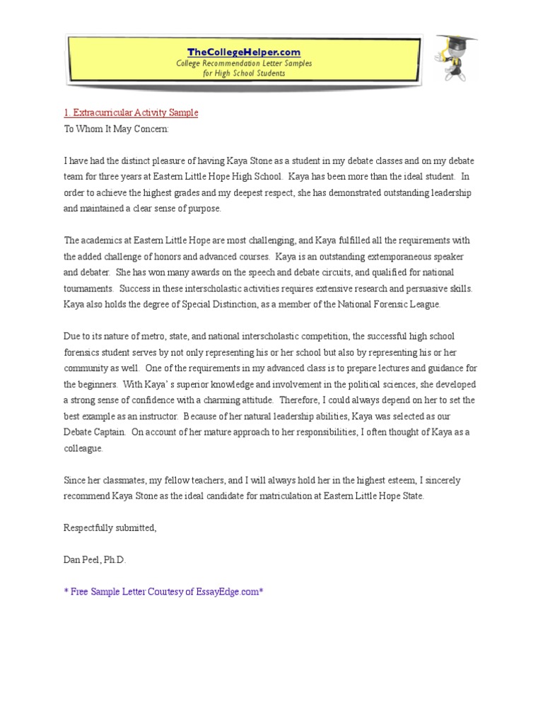 Sample Reference Letters For A High School Student
